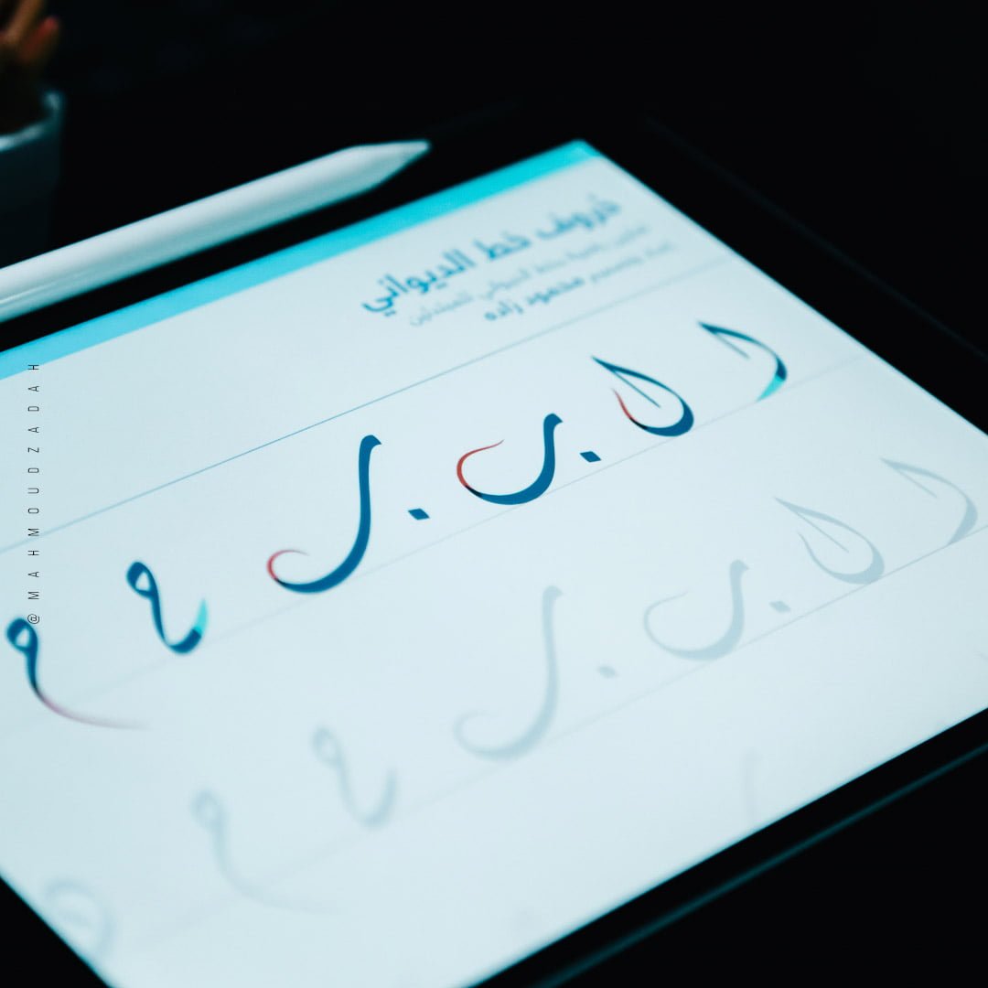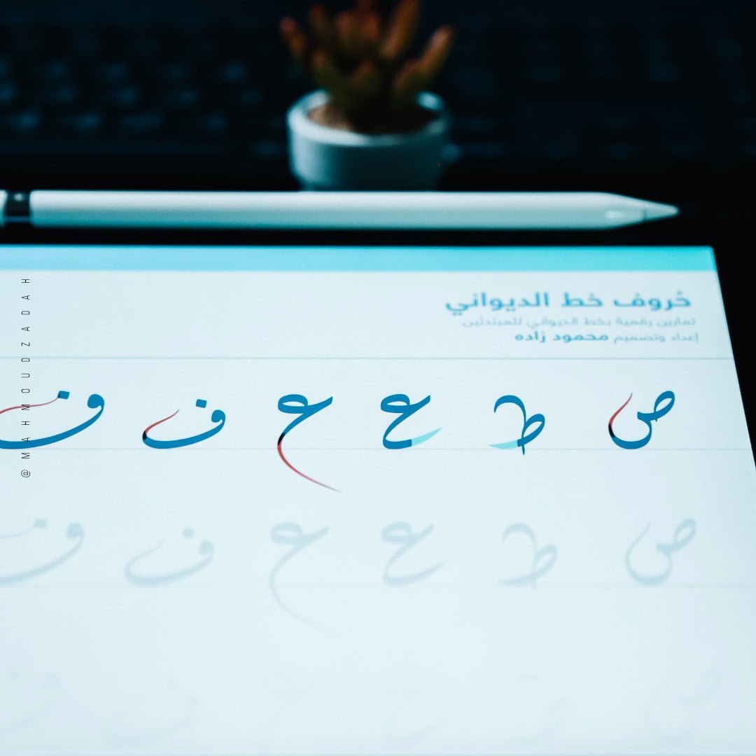 Diwani worksheets for beginners is compatible with Procreate and also available for print. You can print at home using your regular printer. These worksheets will help you improve your digital and classic calligraphy skills. Each letter was written in excellent quality. There are colourful guides and arrows to help you write each letter with easy to follow steps.